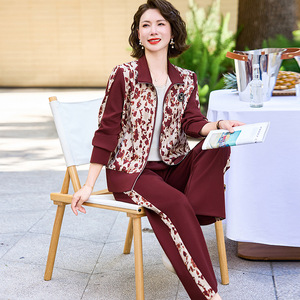 中年妈妈秋装运动套装女2025新款洋气中老年春秋季休闲外套两件套