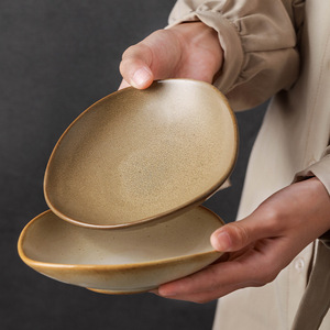 日式粗陶瓷碟点心碟异形甜品火锅调味碟复古菜碟子创意小吃碟餐具
