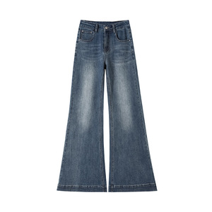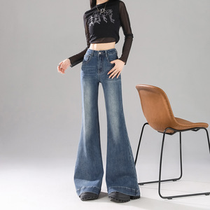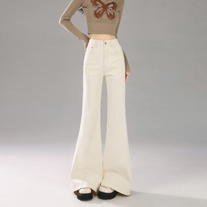 不贴腿喇叭牛仔裤女米白色春秋季新款高腰修身弹力显瘦拖地阔腿裤