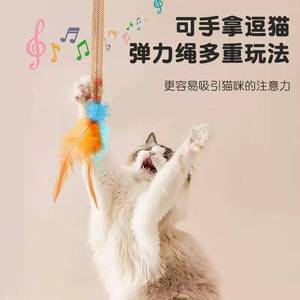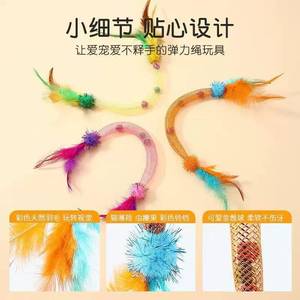 新款弹力网管猫玩具啃咬自嗨薄荷球逗猫棒羽毛猫咪互动宠物玩具