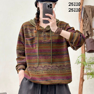 2025秋季新款 复古拼接口袋做旧针织衬衫 宽松连帽套头内搭上衣女