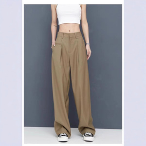 亚马逊跨境新款欧美风夏季高腰宽松显瘦休闲裤直筒垂感拖地阔腿裤
