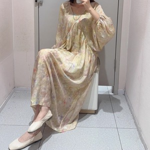 女款夏高级感休闲复古宽松长款V领蝙蝠袖连衣裙法式中袖A字长裙女