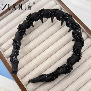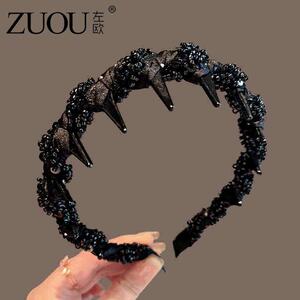 巴黎王妃发箍高颅顶轻奢带齿头箍高级感时尚洋气手工串珠发捆头饰