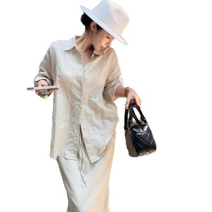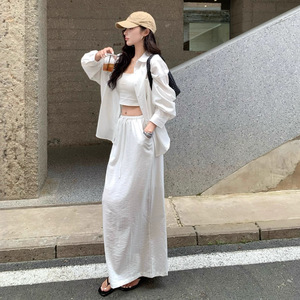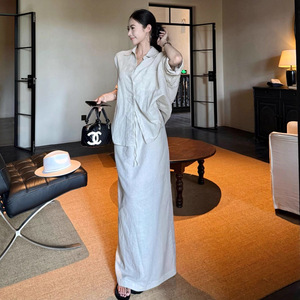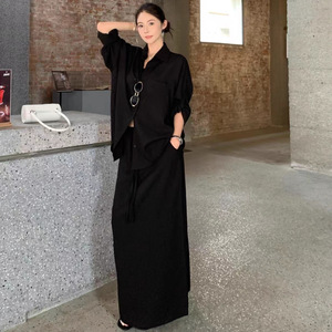 RHGD实拍早秋新品慵懒气质宽松衬衫开衫+显瘦百搭休闲半身裙套装