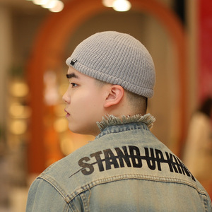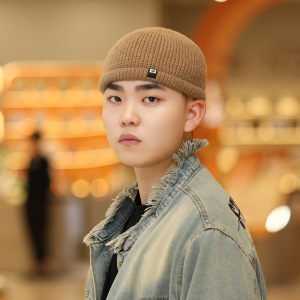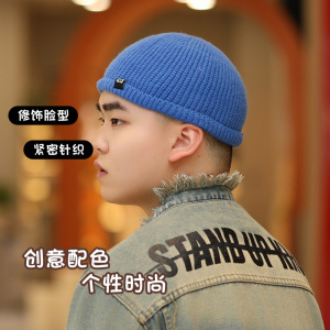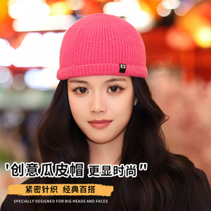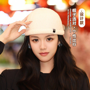 跨境针织帽子女秋冬毛线帽潮牌地主帽日系字母瓜皮帽短檐冬天冷帽