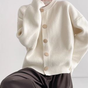 Z设计感单排扣纯色针织衫毛衣女外套开衫慵懒风宽松圆领春秋上衣