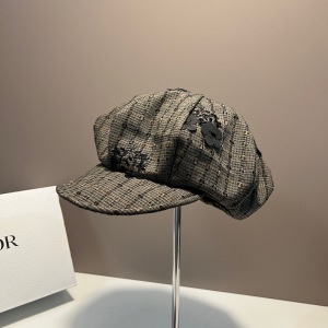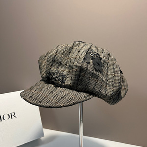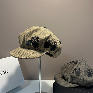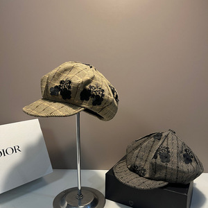 韩国2025年早秋新款小众格纹花朵贝雷帽女大头围显脸小云朵画家帽