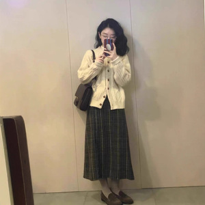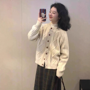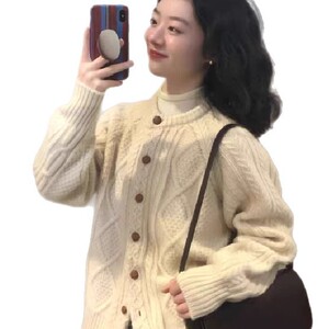 2025早秋新款慵懒风奶杏色麻花针织开衫女宽松百搭外套女图片均码