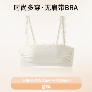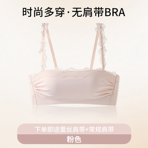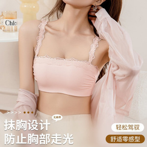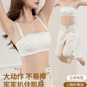 2025叠穿抹胸式蕾丝无肩带内衣女小胸聚拢显大文胸罩调整型文胸罩