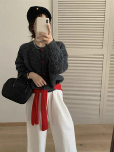 高级感爱心扣子毛衣外套女春季宽松奶fufu黄色针织开衫圆领上衣
