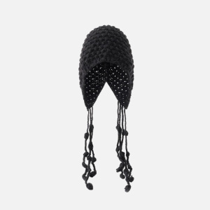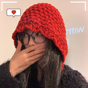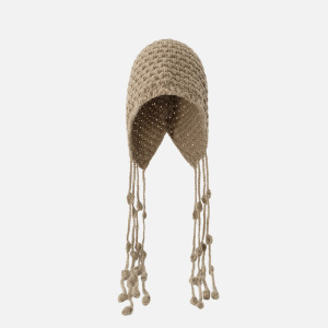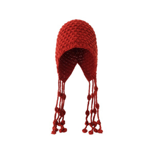 川西旅游手工编织镂空针织帽子女秋出游百搭流苏绑带毛线套头冷帽