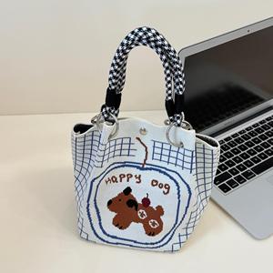 2025新款女士菜篮子手提包2025新款手工编织包包春秋针织小手拎袋