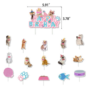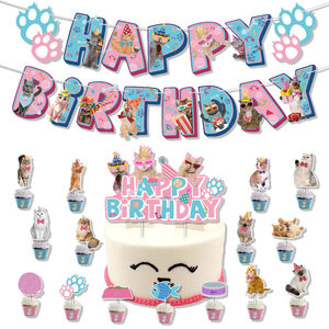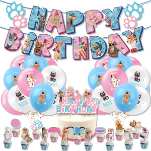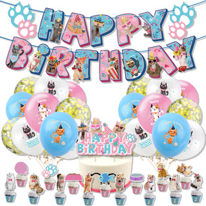宠物猫咪主题生日派对装饰 猫拉旗横幅蛋糕插牌气球套装 布置用品