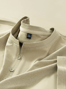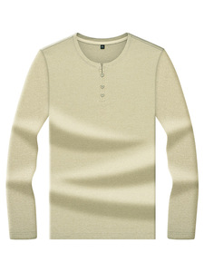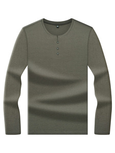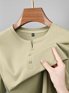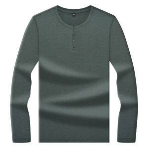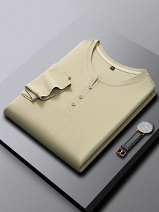 新款纽扣领男士t恤纯色中山领高档中青年休闲保暖秋衣内搭打底衫a
