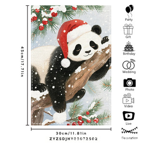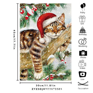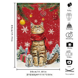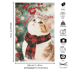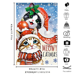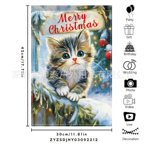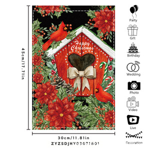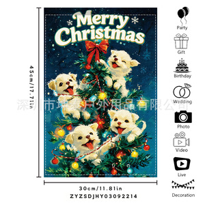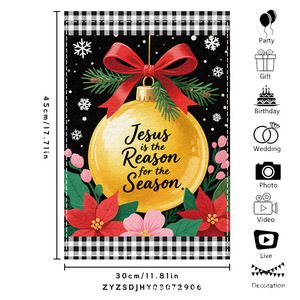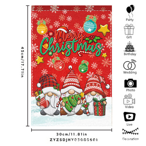 跨境新品欢乐圣诞灯球蝴蝶结黑白格室外内装饰涤纶圣诞节花园旗