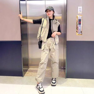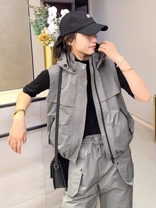 欧货工装马甲外套女款春秋新款小个子连帽休闲马夹背心时尚坎肩潮