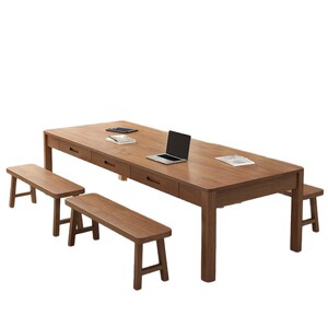严选实木去客厅化桌子带抽屉家用工作台办公桌长桌长条桌大长书桌