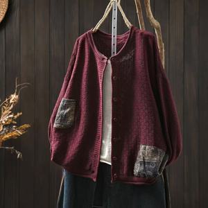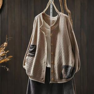 秋季新款 棉线针织复古贴布宽松外搭独特长袖小开衫95010