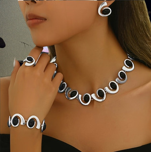 时尚冷淡风几何椭圆形耳环女轻奢精致小众高级感新款四件套
