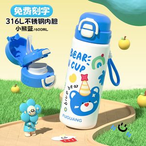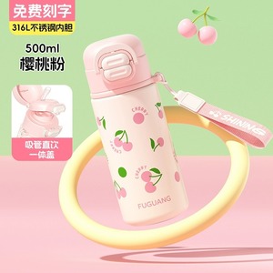 富光双饮保温杯儿童学生上学专用水杯男新款大容量高颜值女吸管杯