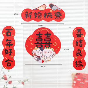 结婚对联男方大门装饰女方出嫁婚房布置卧室入户门冰箱全套喜联贴