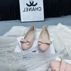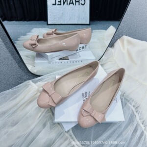 2025夏季新款平底鞋女仙女风不对称蝴蝶结漆皮圆头浅口气质红底鞋