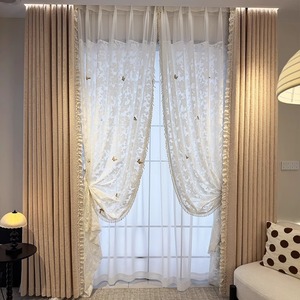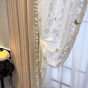 铃兰花语 新款法式美式轻奢粉色卧室遮光雪尼尔窗帘上门安装