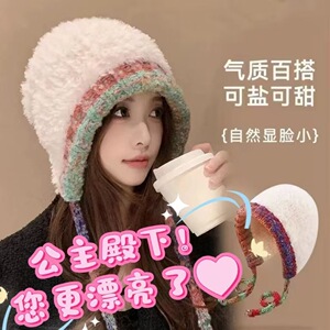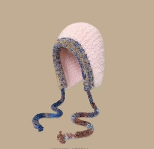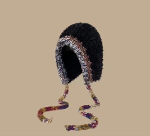 秋冬新款大头围长辫子毛绒护耳针织帽包包两用百搭保暖防寒毛线帽