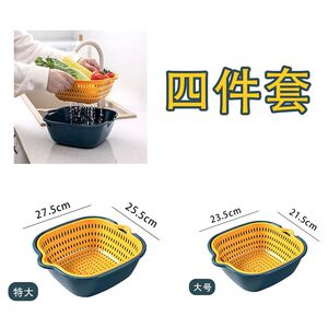 双层收纳塑料盆厨房置物架多功能客厅家用水果盘洗水果菜篮1H