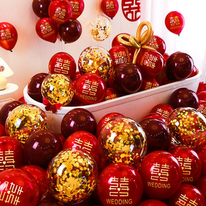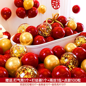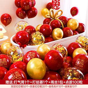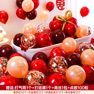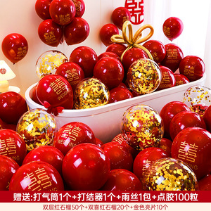 结婚气球装饰红色双层婚礼汽球婚房布置套装订婚场景婚庆用品大全