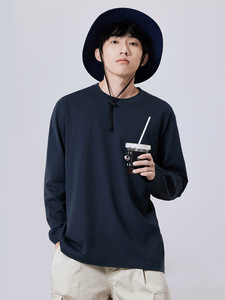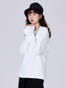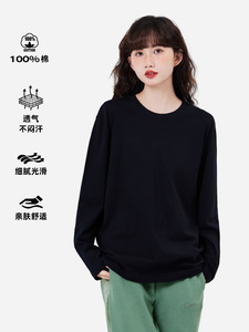 秋冬季纯棉纯色长袖T恤男女同款韩风圆领上衣宽松内搭打底衫ins潮