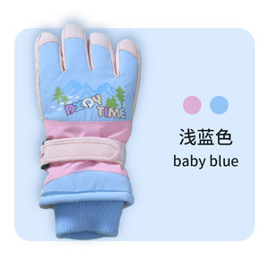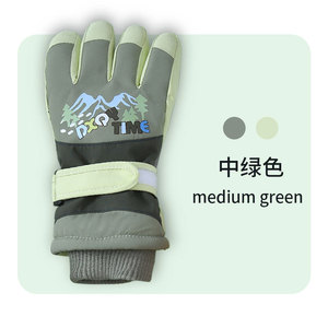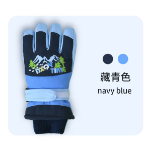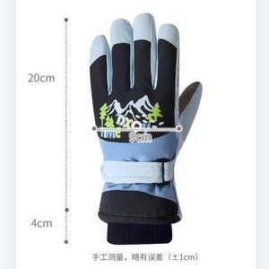 儿童滑雪手套山系图案男女童冬季防水加绒加厚棉手套保暖防风手套