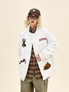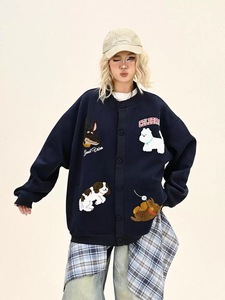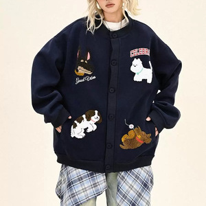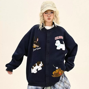 2025新款藏青色卡通毛巾绣开衫卫衣男女春秋薄款情侣装国潮牌外套