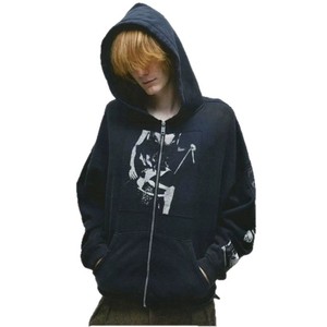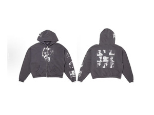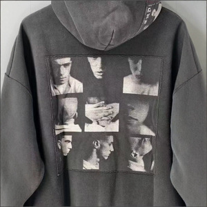 忧郁的富二代复古人物头像印花拉链连落肩袖卫衣男女宽松嘻哈帽衫