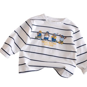 儿童长袖T恤2025春秋新款男童条纹上衣卡通小熊宝宝卡通打底衫潮
