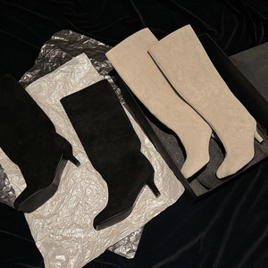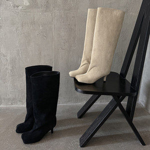 绒面高筒长靴女骑士靴秋冬新款方头细跟高筒宽筒不过膝靴女直筒靴