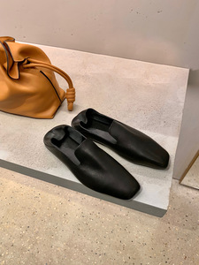 现货~葡萄妈同款 小众斜切方头极简风一脚蹬百搭通勤乐福鞋女春夏