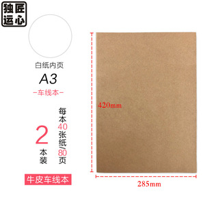 a3笔记本8k空白页车线本牛皮纸封面横线大号本子白纸本绘娜幽