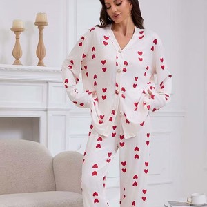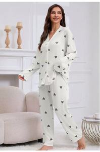 跨境爆款热卖欧美风小爱心Womens pajamas长袖长裤可外穿家居服