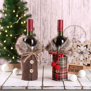 铭冠圣诞节装饰品创意毛领格子红酒瓶套卡通酒瓶袋圣诞衣服酒瓶套