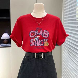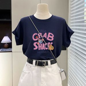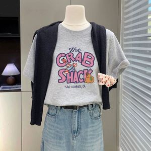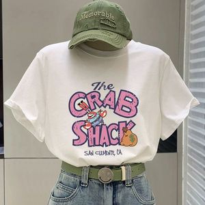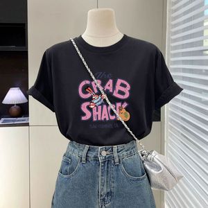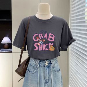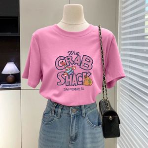 蜜桃粉色t恤女短袖2025新款夏季字母卡通大版宽松显瘦纯棉上衣