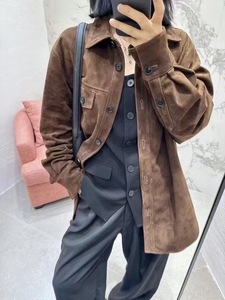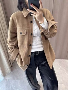 欧货南油2025新款真皮皮衣女山羊皮外套中长款夹克上衣反绒衬衫潮