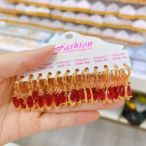 跨境耳环仿高贵祖母绿色镶钻耳扣复古简约黄铜镀金耳坠女款锆石