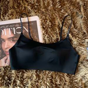 无痕缎面内衣女大胸显小显瘦上托收副乳夏季防走光抹胸细肩带文胸