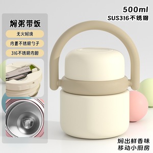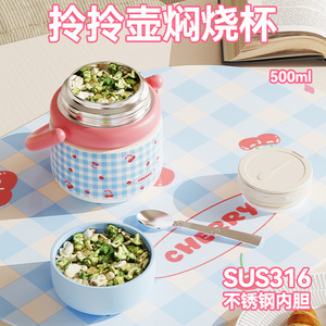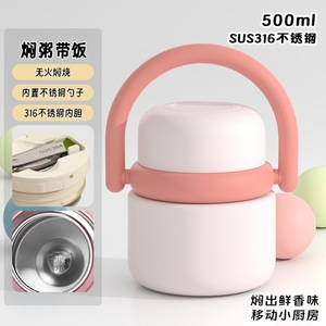 米由保温饭盒高颜值可爱焖烧杯上班族不锈钢便当盒保温提桶拎拎壶