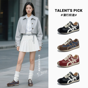 真皮德训鞋女鞋2025秋季鞋子女新款百搭复古运动女款休闲阿甘鞋女