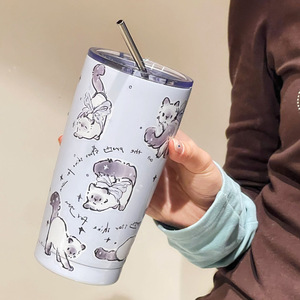 简约高颜值304不锈钢保温杯大容量便捷吸管水杯高颜值居家咖啡杯