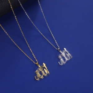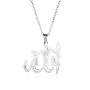 欧美跨境阿拉伯镂空字母吊坠不锈钢项链女士锁骨链饰品个性时尚