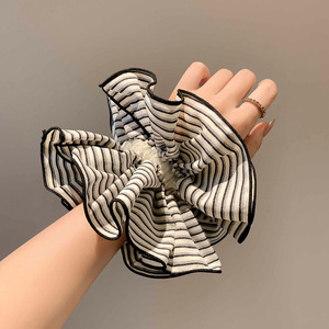 韩系黑色条纹双层大肠发圈女高级感慵懒风扎头发超大百搭头绳发饰